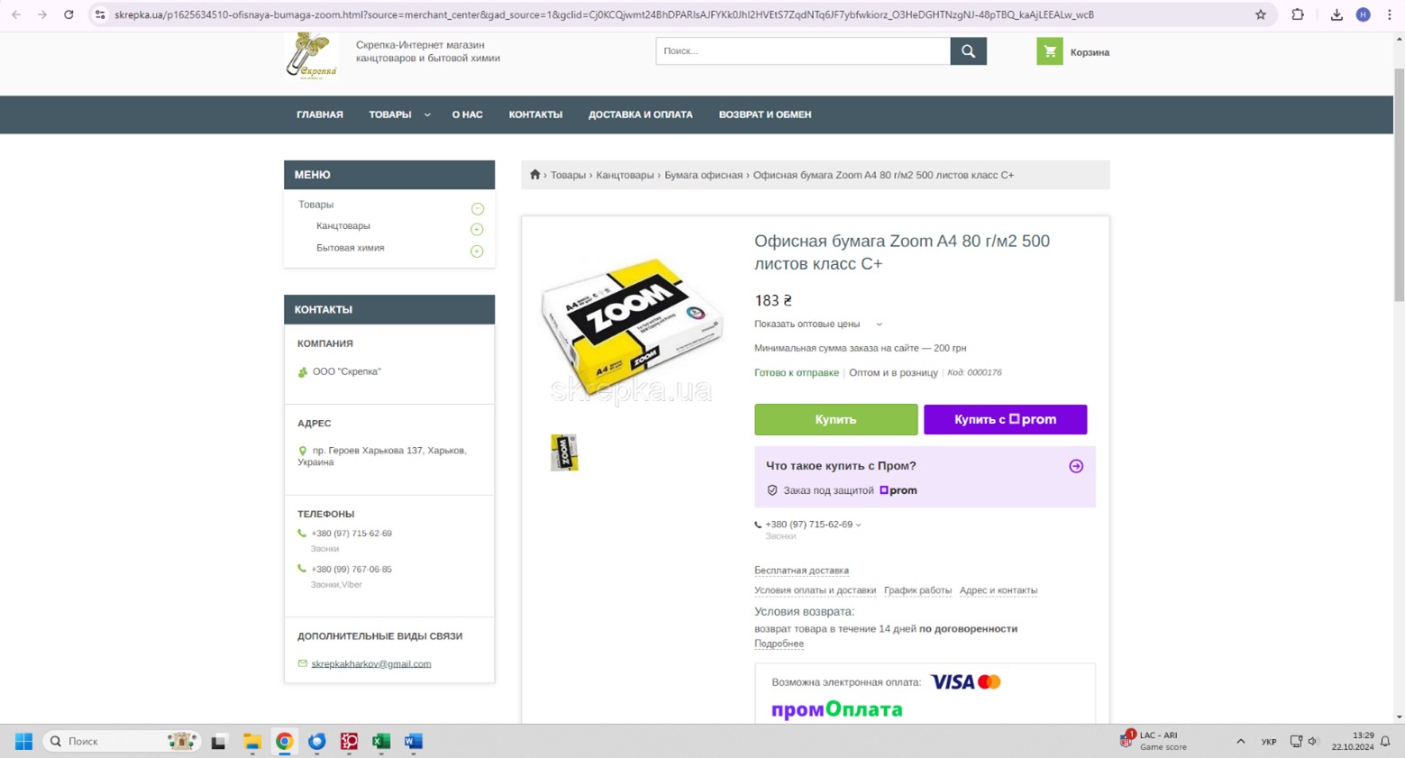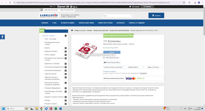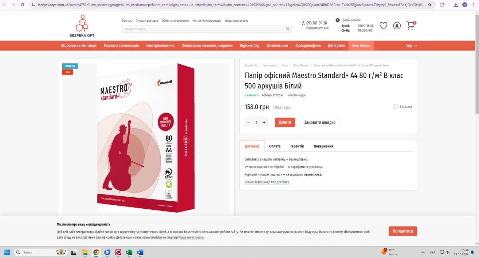 Офісне устаткування та приладдя різне за кодом CPV за ДК 021:2015 – 30190000-7 (придбання канцтоварів - папір для місцевих загальних судів м. Харкова та Харківської області, Територіального управління Державної судової адміністрації України у Харківській області)