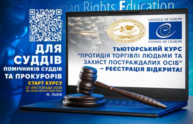 Національна школа суддів України запрошує суддів, помічників суддів та прокурорів взяти участь у тьюторському курсі Ради Європи HELP "Протидія торгівлі людьми та захист постраждалих осіб".